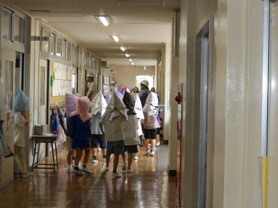 児童と職員を合わせて約300名が参加しましたが、どの子も落ち着いて放送の指示を聞き、静かに行動することができました。実際に災害や火災がいつ、どこで発生するかは分かりません。今回の訓練を通して、冷静に行動することの大切さを改めて確認することができました。