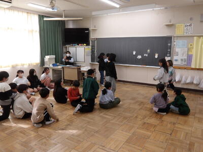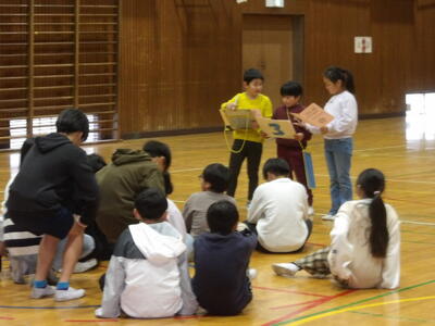 本日の中休みには、3年生が企画した「たてわり遊び」が行われました。始めは少し緊張した様子も見られましたが、子どもたちは司会や説明を一生懸命に務め、上級生・下級生みんなで楽しく活動することができました。