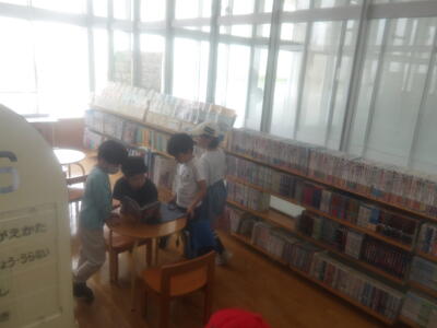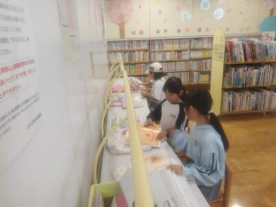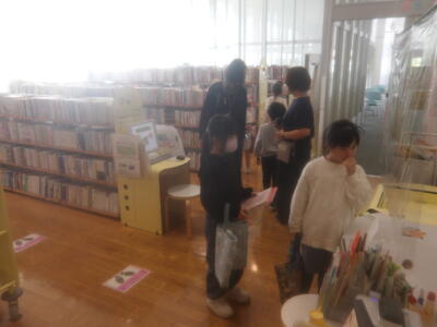 また、5時間目には1年生から「お店屋さん」に招待してもらいました。国語の「ものの名前」の学習のまとめとして行われた活動で、子どもたちは自分たちで店名や品物、お金などを工夫して作り、お客さん役と店員さん役に分かれてやり取りを楽しんでいました。学習の成果がしっかりと表れた、微笑ましいひとときとなりました。