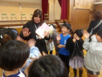 今年度最後となる集会委員会主催の集会が行われました。締めくくりにふさわしく、内容は子どもたちに人気の「宝探しゲーム」です。折られた紙を一人1枚ずつ拾い、「あたり」と書かれていれば得点となるルールで、班ごとに協力しながら楽しむ姿が見られました。中には10点ほど獲得する班もあり、大いに盛り上がりました。曇り空ではありましたが、笑顔あふれる楽しい時間となりました。