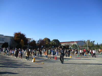最後に、上位3チームを発表して終わりました。短い時間でしたが、晴れた朝に全校児童で遊べて、気持ちのよい朝です。