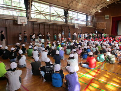 その後、自然体験学校内の展示物を見て回り、体育館で昼食をとりました。