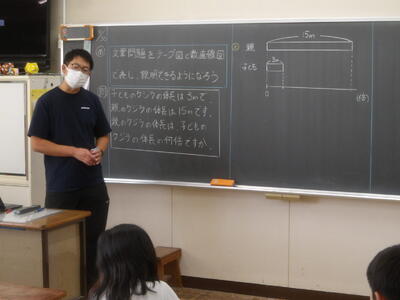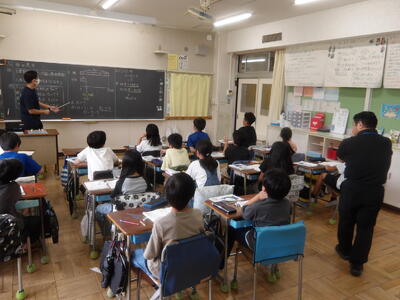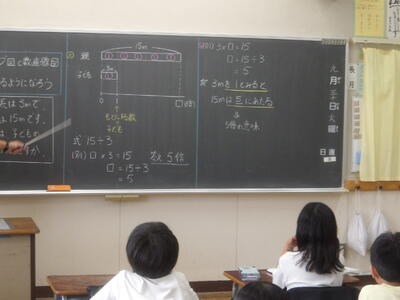 4年生算数「倍の見方」 投稿: 副校長 (09/30) カテゴリー: 今日の出来事 4年生の算数では「倍の見方」の学習を行いました。授業のはじめには、これまでの学習を振り返るプリントに取り組み、苦手な部分を一つひとつ確かめながら進めました。その後は、テープ図や数直線図を使いながら問題を解決していきました。子どもたちは集中して学習に取り組み、ノートもとても丁寧にまとめることができていました。 Tweet -