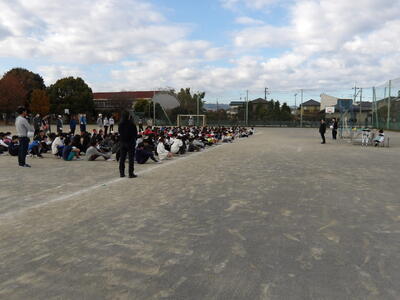 放送が入ると、どのクラスも落ち着いて耳を傾け、状況をよく判断しながら行動する姿が見られました。避難のスピードも普段と変わらず、スムーズに校庭へ集合することができました。