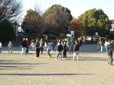 冷え込みの厳しい朝でしたが、子どもたちは寒さに負けることなく、笑顔で意欲的に活動していました。特に高学年の児童は、下級生の様子をよく見ながら、跳ぶタイミングに合わせて縄を回すなど、相手を意識した関わりが随所に見られました。その結果、前回よりも記録を伸ばしている班もあり、継続した取組の成果が感じられました。