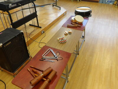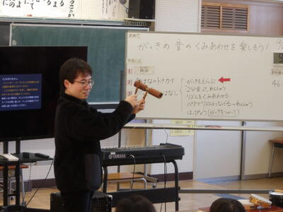 本日は、2年生の音楽の授業「いろいろながっきの音をさがそう」を行いました。