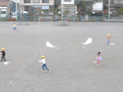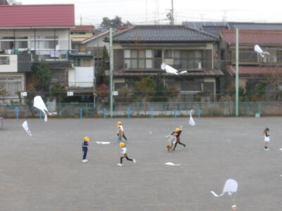 各教室では「あゆみ」が配られたり、お楽しみ会が行われたりと、学期の締めくくりをそれぞれの形で過ごしていました。校庭に目を向けると、1年生が元気いっぱいに走り回り、たこあげを楽しむ姿も見られました。