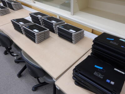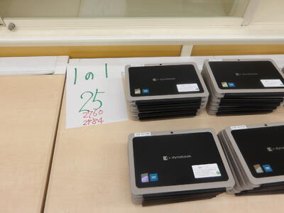 本日、新しいタブレット端末が学校に搬入されました。