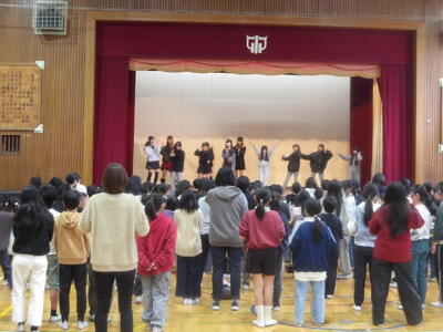 会場からは自然と手拍子が起こり、発表が終わると大きな拍手が送られました。さらにアンコールの声も上がり、最後は見ていた子供たちも一緒に体を動かし、体育館全体が一体となってダンスを楽しむ温かな時間となりました。