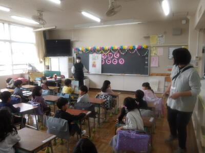 1年生は、話の聞き方がとても上手で、担任の先生の方をしっかりと見て話を聞いていました。鉛筆の持ち方や線の書き方など、基本となる学習にも一生懸命取り組む姿が見られ、これからの成長が楽しみです。