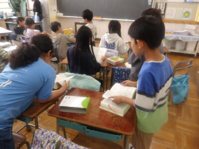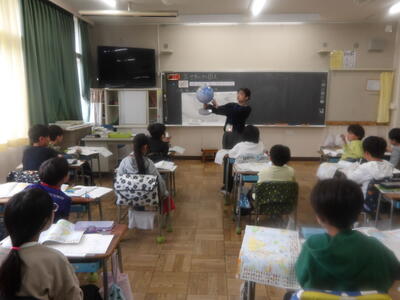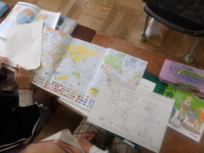 教室を回ってみると、掲示用の作品づくりに集中していたり、地球儀と地図帳を見比べながら理解を深めたりと、それぞれの学年に応じた学びが進められていました。校庭では、1年生が元気いっぱいに体を動かし、楽しそうに体育の学習に取り組む姿が見られました。
