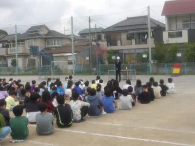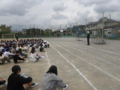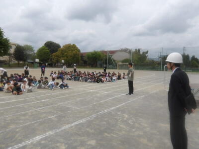 本日、火災を想定した今年度初めての避難訓練を行いました。どの学年も放送や先生の指示をよく聞き、落ち着いて行動することができました。初めての訓練にもかかわらず、避難完了までの時間は3分40秒台と大変立派で、子どもたちの真剣な姿がとても印象的でした。