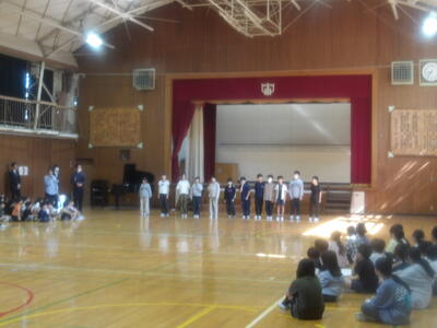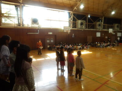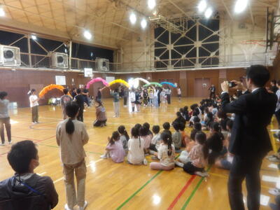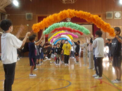 6年生と手をつないで入場する1年生は、花のアーチと全校児童からの温かい拍手に迎えられ、少し照れくさそうにしながらも嬉しそうな表情を見せていました。会では、各学年から心のこもった歓迎の言葉が贈られ、1年生からも元気にお礼の言葉が発表されるなど、心温まるひとときとなりました。