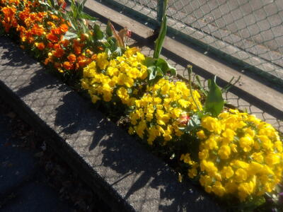 また、正門付近には色とりどりの美しい花が並び、登校する子どもたちを明るく迎えてくれています。これらの花は、用務員さんが日頃から丁寧に花壇の整備を行ってくださっているおかげです。