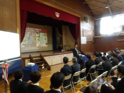 本研究は2年間にわたり取り組んでまいりました。当日は、2年間講師としてご指導いただきました**國學院大學 人間開発学部教授 杉田洋先生にご講演を賜り、本校の実践を理論的に価値づけていただくとともに、今後の方向性についても多くの示唆を頂戴いたしました。