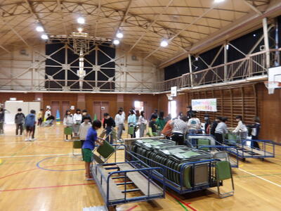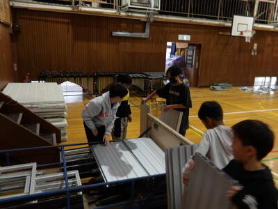 今朝は、5年生の力を借りて体育館の片付けを行いました。子どもたちはてきぱきと動き、あっという間に会場がきれいになりました。