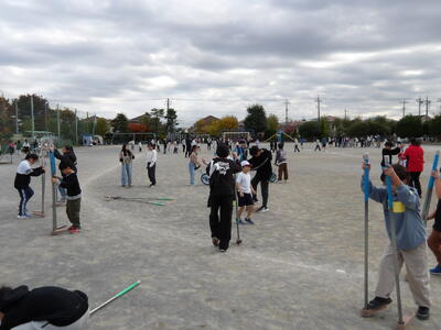 本日も良い天気の中、全校で「チャレンジタイム」に取り組みました。学級閉鎖のクラスもある中でしたが、高学年の児童を中心に、子どもたちが協力して準備や片付けをてきぱきと進める姿が見られました。