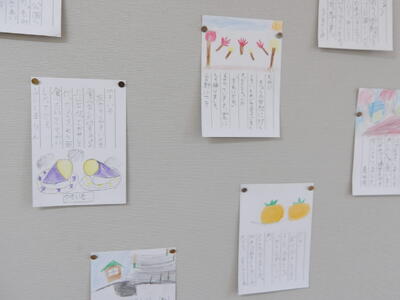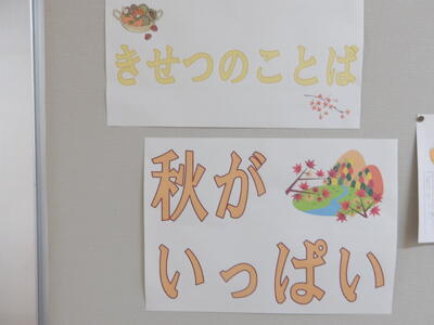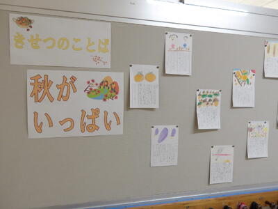 朝晩の冷え込みに、日に日に秋の深まりを感じる季節になってきました。校内を歩いてみると、子どもたちが作った「秋」をテーマにした掲示物が並び、色とりどりの作品から季節の雰囲気が伝わってきます。