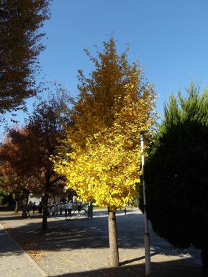 今日は天気にも恵まれ、校庭のいちょうが鮮やかに色づいています。けやきの木の落ち葉も増えてきており、季節の移ろいを感じる一日でした。
