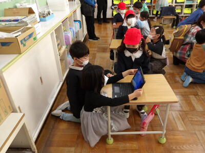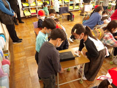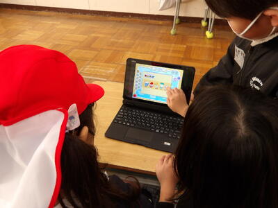 また、1年生は ほうりんじ幼稚園との交流学習も行いました。タブレットを使ってお絵かきの仕方を教えるなど、年下の友だちに優しく関わる姿が見られ、成長を感じる時間となりました。