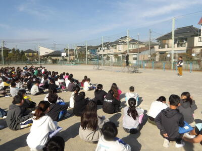 生活指導の先生からは、1月の生活目標についてのお話と、心に響く絵本の読み聞かせがあり、子どもたちは全員が集中して話を聞き、じっくりと考える姿が見られました。
