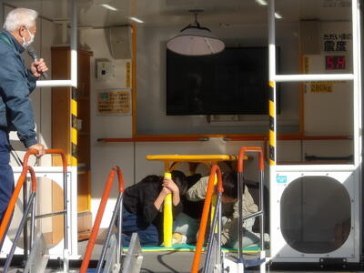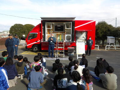 また、3年生と4年生は訓練後に起震車による地震体験を行いました。今回は震度5強の揺れを体験し、地震の怖さや、実際に起こった際の揺れの大きさを実感しました。地震はいつ起こるかわかりません。体験を通して、正しい安全確保の姿勢や、自分の身を守る行動について学ぶことができました。
