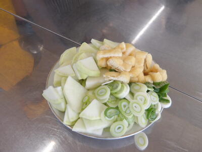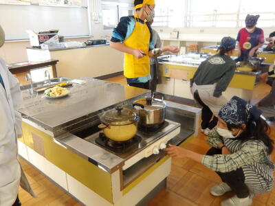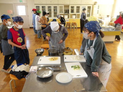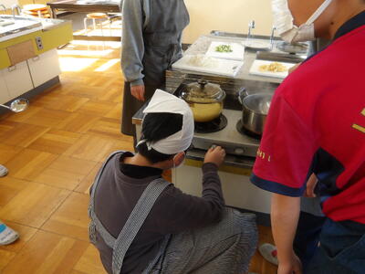 味噌汁は煮干しからだしをとり、丁寧にあくを取りながら調理しました。だしの香りが調理室いっぱいに広がり、素材の味を大切にする学習になりました。