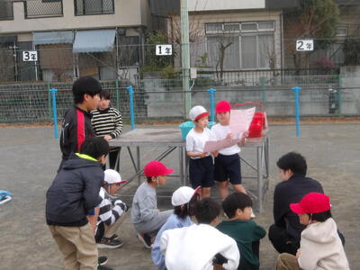 はじめに、たてわり班の班長さんとじゃんけん勝負をし、次は担任の先生方、最後は校長先生と副校長との勝負です。