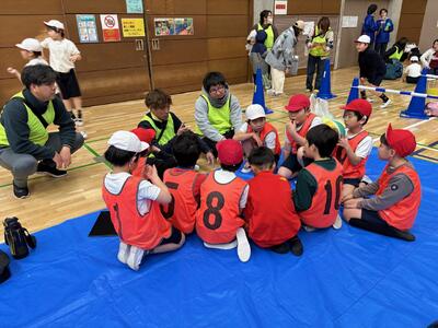 また、来年度最高学年となる現5年生とも顔合わせを行い、簡単なゲームで楽しく交流しました。最初は緊張していた新1年生も、ゲームが進むにつれて笑顔が増え、会場はあたたかな雰囲気に包まれました。