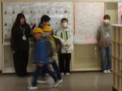 また、掃除の時間には、地震発生後に火災が起こるという想定で避難訓練を実施しました。今回は、必ずしも担任が近くにいるとは限らない状況を想定した訓練でした。