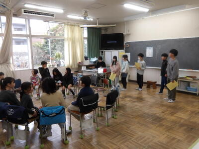 また、朝の時間には、たてわり班ごとに集まり、「6年生にありがとうを伝える会」に向けた練習を行いました。これまで学校の中心となって様々な場面で活躍してくれた6年生へ、感謝の気持ちをしっかり届けようと、どの学年も心を込めて準備を進めています。