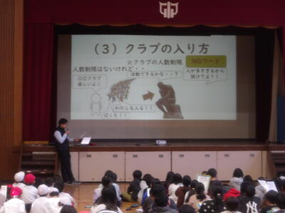 また、6時間目には3・4・5年生を対象に、次年度のクラブ活動説明会を実施しました。クラブの内容や活動の様子について簡単に紹介があり、子供たちは来年度への期待をふくらませている様子でした。